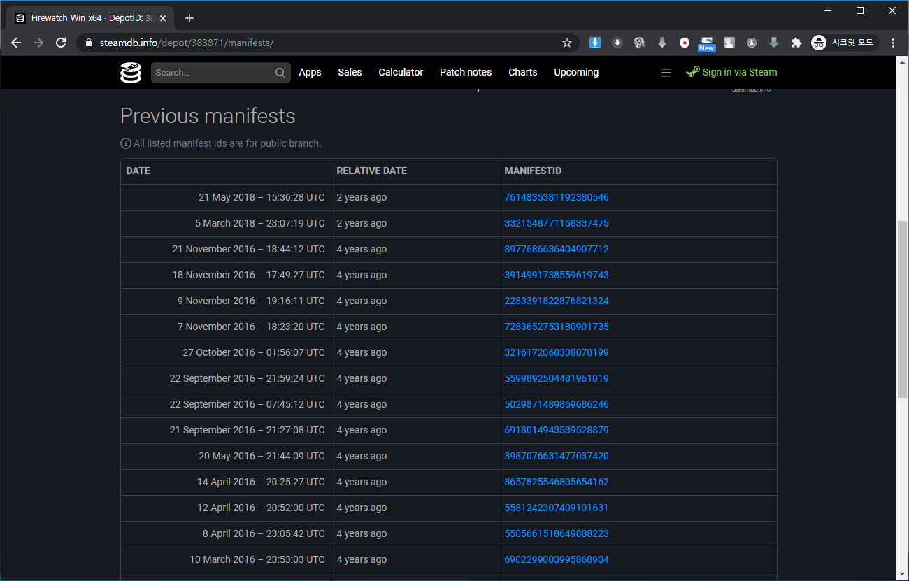 들어가시면 버전별로(업데이트날짜별로) 번호가 나눠져 있습니다.